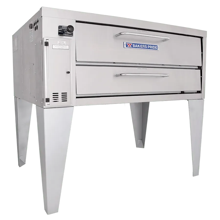 The Bakers PrideĀ® model 451 standard-depth gas pizza oven is designed for all your high-volume baking needs. The single oven chamber features a Cordierite deck with 8" deck height and independently controlled top and bottom heat dampers for perfectly balanced results. This 66" wide model is constructed with heavy-duty angle iron frame, which is fully welded to allow for stacking up to three ovens. The oven exterior is heavy-duty stainless steel and fully insulated for cooler outer temperatures and consistent interior temperatures.